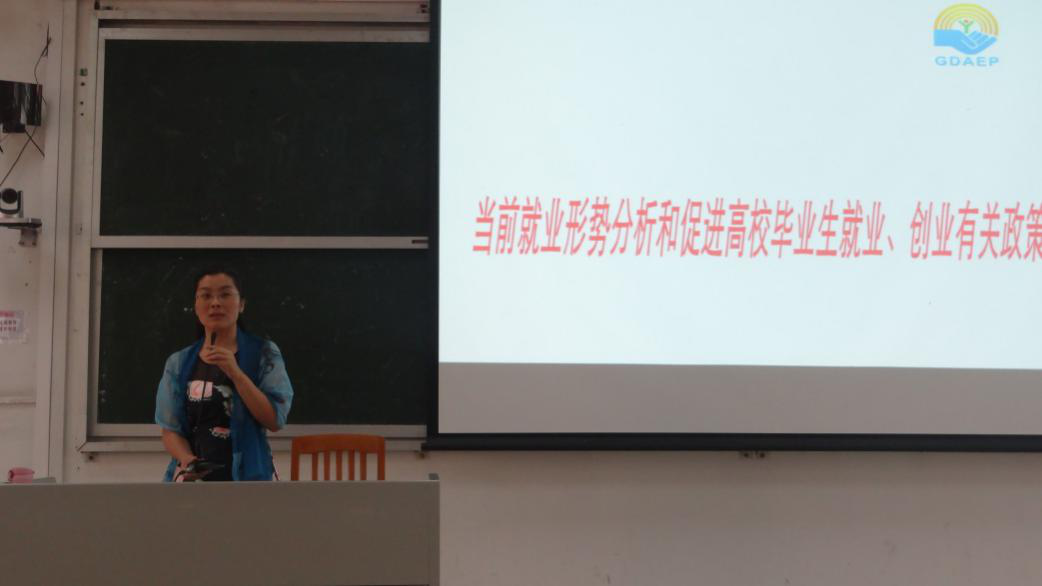 杜焕君首先分析当前大学生就业形势并解读了促进高校毕业就业创业的有关政策,对当前我省就业发展的主要途径和经济新常态下就业工作的新特点进行简单分析。她向同学们展示了近两年学校和学院的有关毕业生就业基本情况,让同学们对本专业的就业去向有了更深入的认识。在对当前就业形势进行分析的同时,她也激励同学们把握当前良好的政策和社会条件,积极创业。