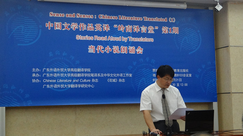 6月21日上午,我院成功举办中国文学作品英译“岭南译言堂”第1期——当代小说朗诵会(Sense and Senses: Chinese Literature Translated(1)—Story Reading)。本次活动为弘扬中国文学与文化、充分发挥高翻学院的笔译优势、带动我校师生从事中国文学英译的热情,由我院笔译系牵头,中华文化外译工作室承办,联合Chinese Literature and Culture杂志、《花城》杂志及广东外语外贸大学翻译学研究中心共同协作,邀请我院口笔译教师及研究生、外籍专家、兄弟院校师生共聚一堂,聆听中国当代文学英译作品译者朗诵译作,并由外籍专家点评分享。