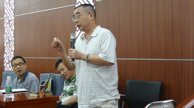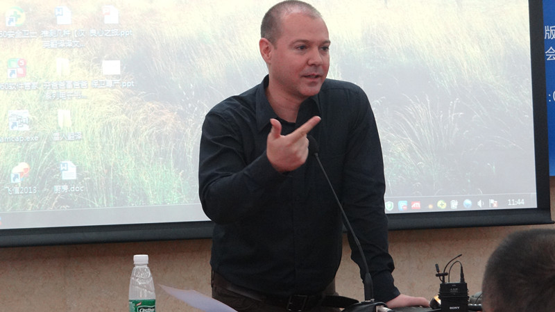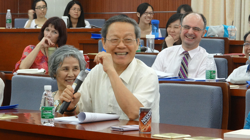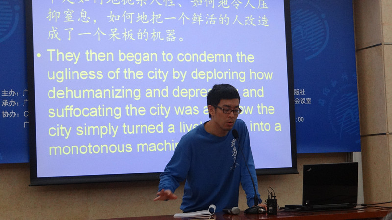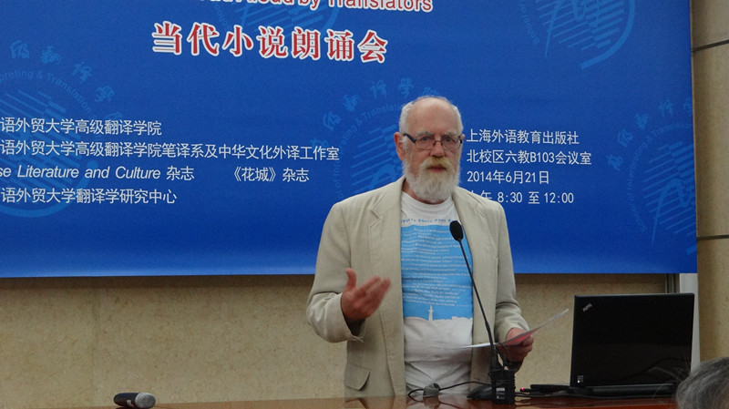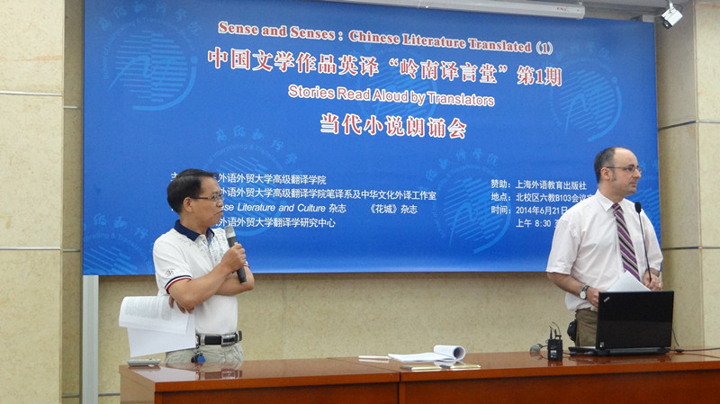 作为本次活动主要发起人之一的褚东伟首先朗诵精心挑选的译作片段,受到听众阵阵掌声,外籍作家、诗人Fraser Sutherland赞其行文流畅,也中肯地给出细微修改建议,褚东伟称,Fraser Sutherland作为单语背景的英语母语人士,对译作给出的意见相当真切而有价值,并强调译作采用单语背景审校的重要性。之后,李明副院长朗诵译作《推测几种》片段,由我院加拿大籍留学生温仕豪作点评,师生互换点评角色、其乐融融交流探讨的景象,是我院译学精神最真实的写照。欧阳利锋与外籍评委Stephen Rake别出心裁,先评后诵,高度赞扬了《爱情研究》作者李银河的研究成果及开拓精神,以及她对中国社会学的贡献,而作为译者,是想通过该类文学的翻译,向世界展示中国正在觉醒的“性学”意识。这也正是中译外的宏观意义的体现。余东教授的《保卫老师》英译片段朗诵结束后,我校英教学院教师薛媛对文中一个动物身体部位的细节提出了疑问,该疑问引起了所有人的积极讨论,大家一致认为,翻译所需要关注的,不仅仅是词典里所注释的意思,还需要结合生活实际。这充分体现了丰富的经历及探究的精神对于译者的重要性。随后,英文学院教师许勉君朗诵译作片段,褚东伟评价称,许老师的参与对于本次活动意义非凡,这意味着,我院这样的活动并不仅限于院内,也欢迎全校有优秀作品的老师、同学共同参与,这也是将来“岭南译言堂”的发展方向。最后,作为本次译作中唯一一位英语母语的译者,牟传门朗诵译作《胡文青传》片段,其对中国历史和文化的深刻了解,在译作中充分体现出来,受到众人一致好评。