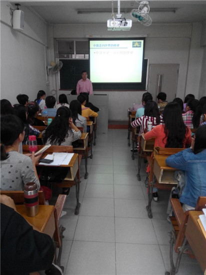 课堂上,黄友义以自身作为中国翻译总编辑,和参与各种翻译实践总结出的经验,首先和大家探讨了中国目前走向世界的桥梁,翻译话语权,以及其中存在的一些问题,并进行了扩展讲解;其次,他指出,中译外没有捷径可走,译者应该更加关注外国人的思维习惯和本国的文化特色。在阐述这两个要点时,黄友义附以生动而充分的实例加以分析,让同学们更加深入地了解了翻译的重要性和需要注意的要点。