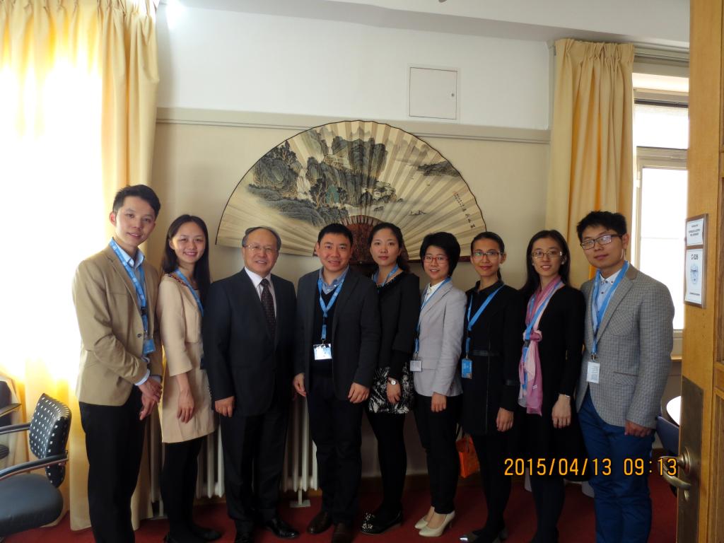我校仲伟合校长于2011年与时任联合国副秘书长沙班博士签署了协议,广外正式成为联合国大学外延合作项目的成员。本次是我校第一次组织派出国际会议传译证书班学生集体赴联合国开展会议口译实习,联合国日内瓦办事处给予了高度重视和大力协助。口译处李正仁处长亲自看望学生,并颁发实习证书。口译处中文科资深译员冯小兰(广外校友)、吴杰和黄迅余为学生安排会议及设施,还以授课、讲座、自由交流等形式与学生互动,传授经验。詹成教授也全程参加会议,监听学生的口译产出并给予现场指导。