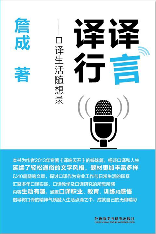 近日,我院詹成教授的新著《译言译行——口译生活随想录》(ISBN 978-7-5135-5833-4)由外语教学与研究出版社正式出版。