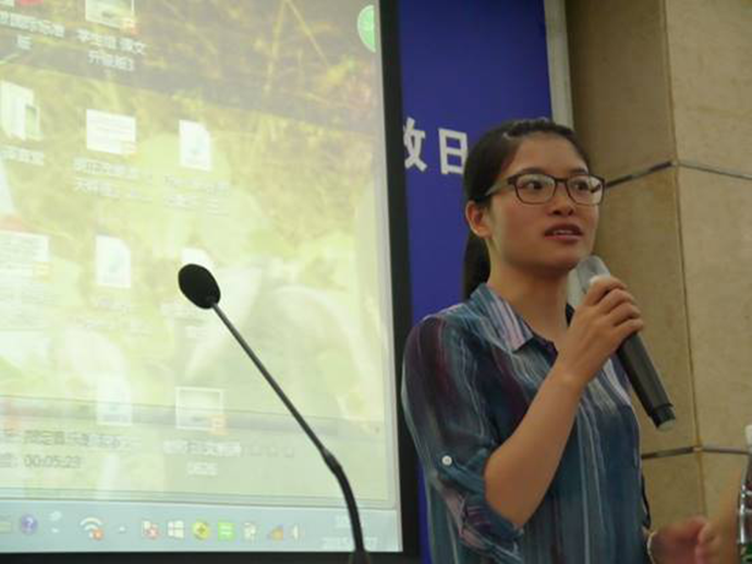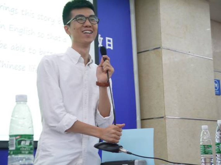 英文学院的许丰盈、杨卓筠、伍嘉彦和侯吴婷诵读了翻译的《爸爸的花儿落了》(原作者为林海音)。接着来自中文学院的刘智婷朗诵了翻译的《封锁》片段(原作者为张爱玲),受到现场的中外师生一致好评。在随后的研讨会上,与会师生进行了热烈讨论,积极提问,问题涉及中英语言差异与转换、跨文化交际下的翻译、译者翻译时对原文的贴近程度等细节。来自高翻学院的毕业生高咪咪分享了她的翻译心得体会,并与青年作家林培源展开了一个关于译者每天翻译量与作家每天创作量对话。