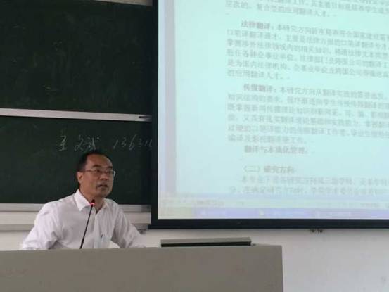 老师们分别介绍商务翻译研究、传媒翻译研究、文学翻译研究、翻译教育研究、MA口译研究、MA笔译研究、应用口译研究、翻译与本地化研究以及法律翻译研究等9个专业方向的具体课程设置和学分要求。