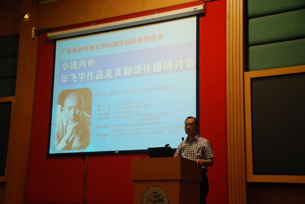 本网讯2015年10月27日下午2点30分,由广东外语外贸大学中国语言文化学院和高级翻译学院联合承办,外语研究中心与语言服务协同创新中心、美国Chinese Literature and Culture杂志编辑部协办的“小说内外——毕飞宇作品及其翻译传播研讨会”在我校行政楼三层国际会议厅隆重举行。
