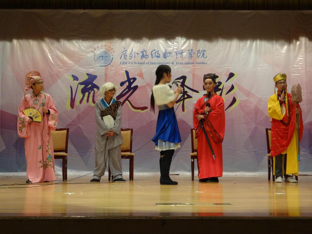 将全场气氛再次燃至最高点的,当属我院15MTI级学生带来的小品《英雄救美》。搞怪的服装,无厘头的情节,观众们无不捧腹大笑。其中,15级研究生陈乔饰演的“东方不败”更是给每一位观众都留下了无比深刻的印象。