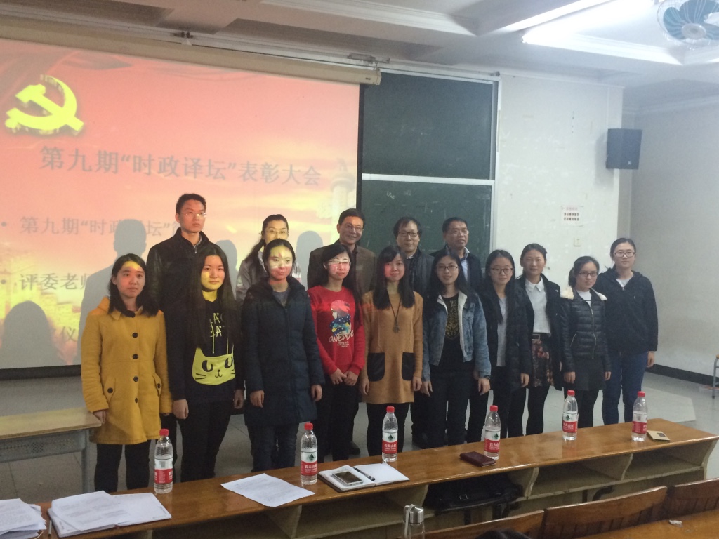 12月22日下午2点30分,第九期“时政译坛”表彰大会暨党支委培训会在第二教学楼举行。本期“时政译坛”共收到102篇参赛稿,其中英译中68篇,中译英34篇。