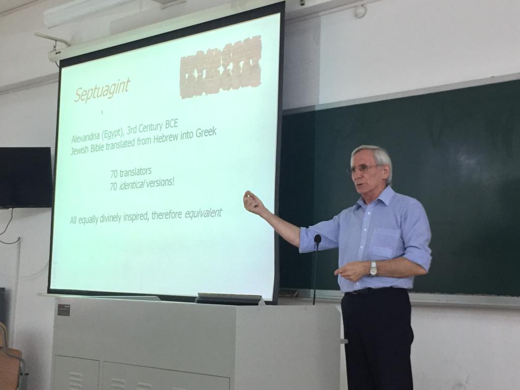 Theo Hermans教授首先讲了两个故事,从而引出他对翻译对等的新观点:文本之所以对等,是因为具有权威性,被众人认可。所以,一旦译文具有这样的效力后,该译文就不再是翻译的文本了,而是与原文同等的另一种文本。