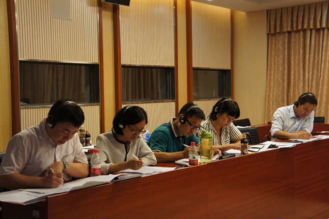 此次考试从6月25日开始,为期两天。考试邀请到高规格的职业译员组成评审委员会,考官包括:联合国日内瓦办事处资深译员吴杰、上海市外办翻译室副主任吕正韬、香港中文大学高级讲师江红、中国对外翻译出版公司侯海强和广外高翻学院詹成。其中,江红和詹成均为国际会议口译员协会(AIIC)会员。
