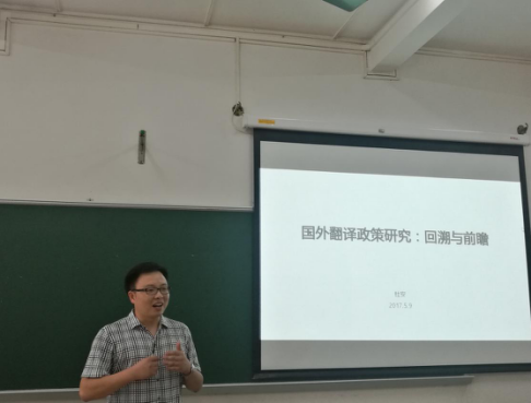 5月9日下午,本学期翻译学博士论坛第二讲在四教116举行。本次论坛由我院2016级博士生杜安主讲,题目为“国外翻译政策研究:回溯与前瞻”,穆雷教授应邀出席,多名博士生和硕士生参与讨论,论坛由博士生陈元飞主持。