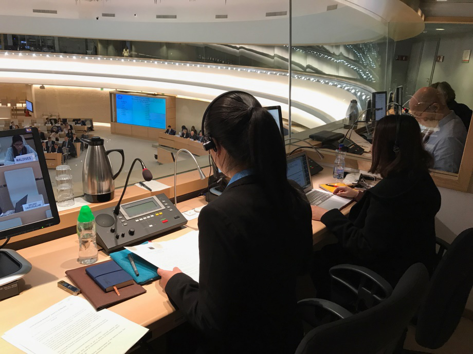 学生在人权理事会进行口译演练