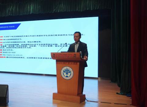随后,吴俊峰副院长就国际组织实习的资助向全体同学做了介绍。他说到,留学基金委的许多项目资助使学生有更多机会走出国门,介绍留基委资助政策的同时,他也介绍了不少留基委提供给学生的国际组织实习机会。在介绍了留基委资助的相关政策后,他详细地介绍了学校的相关资助政策及标准、申请时间等要求,同时,吴院长结合学生提到的一些问题给大家做了接到,如签证问题。