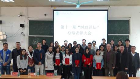 11月21日下午,我院第十一期“时政译坛”表彰大会在二教219举行。党委书记刘志军、党委副书记杜焕君、笔译系主任欧阳利锋、“云山资深教授”傅鹏辉以及我院辅导员和学生党员参加了本次活动。