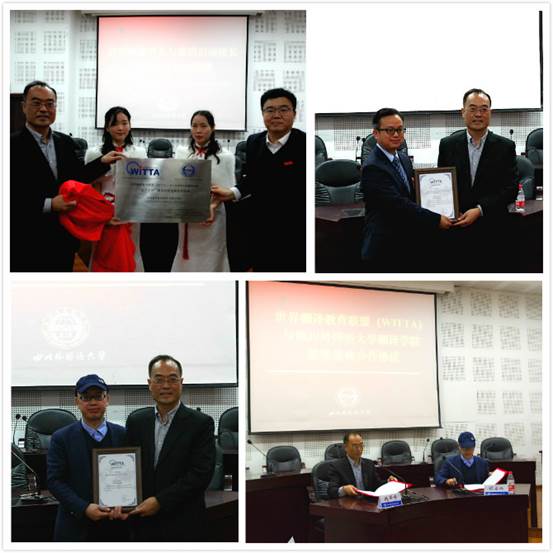 双方签署了联合科研战略合作协议,共同揭牌。在接下来的聘任仪式上,赵军峰教授向入选WITTA翻译学科(专业)大数据课程资源建设专家委员会的祝朝伟教授颁发了专家聘书,向四川外国语大学翻译学院胡安江院长颁发了WITTA常务理事聘书。