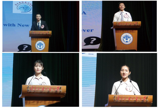 选手按照分组顺序先进行三分钟主题为“New Era, China and the world”的定题演讲。紧接着,每位选手现场抽题,准备1分钟的即兴演讲,准备时间为15秒。即兴演讲结束后,评委就定题演讲的内容提问,选手进行为时1分钟的应答。本次比赛评委由口译系主任王巍巍、高级译员研修部主任田璐、学院教师许艺、傅艾和陆晓明担任。整个比赛过程不仅考验演讲者的演讲技巧,更考验临场应变能力和思辨能力。在提问环节时,面对诸如死刑是否应该被废除、经典著作中是否该存在攻击性的语言、怎样讲好中国故事等问题,选手们紧紧围绕新时代中国的现实情况进行回答。选手们声情并茂、慷慨激昂、大方自然并富有感染力的演讲给观众留下了深刻印象。