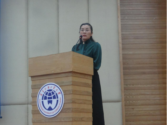 黎靖怡同学则分享了在联合国逐字记录处实习过程中的感想与收获。她先向同学们介绍了申请逐字记录处岗位实习的具体的流程:网上申请、学院推荐、HR筛选和联合国中文处筛选。她提到,考官筛选时看重的是应聘者出色的外语和母语能力,扎实的翻译技巧和宽广的知识面等核心竞争力,若想在优秀的竞争者中脱颖而出,就必须增强自身的中英文转换能力,在某些专业领域上取得一定的成绩,全面提高自身软实力。