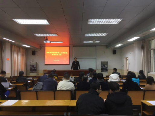 12月14日下午,我院教职工工作会议暨理论学习会在四教424举行。会上,学院领导班子对近期工作进行布置和安排,并集体学习习近平总书记视察广东重要讲话精神,进行了“弘扬爱国奋斗精神,建功立业新时代”主题学习。学院全体教职工参加会议,会议由李和民书记主持。