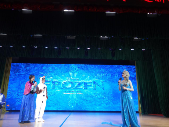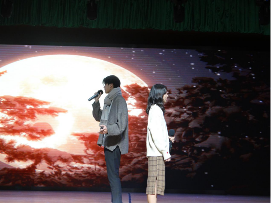 舞毕歌起,本科1802班的林蓓苗扮成网红“熊本熊”,为同学们带来粤语歌曲《双人床的空位》,表达了年轻人对美好爱情的渴望。随后,宗岱班的同学创造性地将《泰坦尼克号》、《幻乐之城》、《小王子》、《寻梦环游记》和《冰雪奇缘》五部电影的经典情节汇编在一起,献上笑与泪的交融的舞台剧《歌舞青春》。