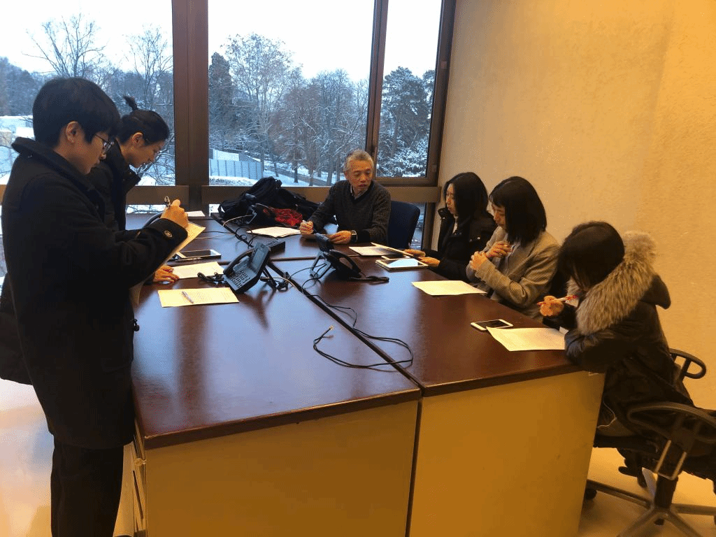 1月24日是我院国际会议传译班2017级五名学生在联合国日内瓦办事处口译处实习的第四天。