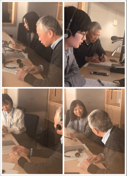 我院学子在联合国实习的第三天,口译科副科长竺小华和资深译员赵军湘在百忙之中抽空来到实习同传箱指导同学们进行口译练习,和同学们分享了口译实践中的宝贵经验。