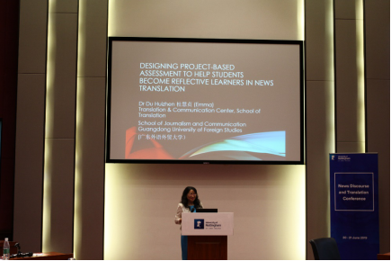 中心的杜慧贞博士也在研讨会上介绍了传媒翻译方向课程《新闻编译》的教学研究成果,探讨了如何设计贴近行业实践的新闻编译项目,并融入同学相互校译和反思笔记撰写等环节以培养学生全方位的能力。