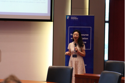 我院翻译与国际传播研究中心主任潘莉教授近日在宁波诺丁汉大学举办的“新闻话语与翻译”研讨会上做主旨发言。她以英语新闻报道中的中国政治隐喻为例分享了自己的最新研究成果。她所揭示的政治、媒体、翻译三者之间的互动关系引起了与会者的热烈讨论。