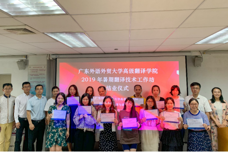 2019年7月10日,广东外语外贸大学高级翻译学院第二期翻译技术工作坊于第二教学楼403圆满结课。本次工作坊于7月1日启动,历时十天,由国内外知名翻译技术专家授课。高翻学院不仅通过本次工作坊促进了翻译技术领域的合作与交流,还与上海一者信息科技有限公司共同成立了高精尖翻译资源研发与认证中心,完成了全国首次语料加工认证培训,推动语料加工的规范化。