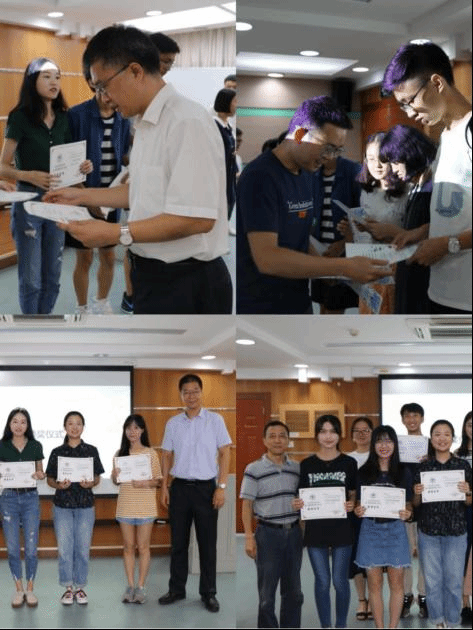 7月9日上午,首期英语语音工作坊汇报演出暨结课仪式在第九教学楼203课室隆重举行。学院党委李和民书记、邢杰副院长、胡正茂副院长、笔译系主任欧阳利锋老师、高翻创新创业部负责人陈庆老师及辅导员颜梁柱老师等出席仪式。李和民书记在致辞中指出,语音工作坊将授课与实践相结合,为学员创造了绝佳的练习机会。陈庆老师则通过声情并茂的演讲强调了语音语调的重要性。