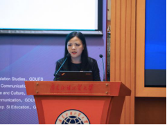 聘书颁授仪式结束进入本此论坛第四场主旨发言环节,由广外翻译与国际传播研究中心研究员吕洁博士主持。北京真之影文化传媒有限公司总经理、制片人、电影译审何钦先生以“从中国电影译介看中国文化的国际传播”为题,图文并茂地讲解了中国文化对世界电影的贡献、中国电影市场的概况以及中国电影产业的发展和挑战,他认为字幕翻译规范标准化有助于将中国电影推向世界。